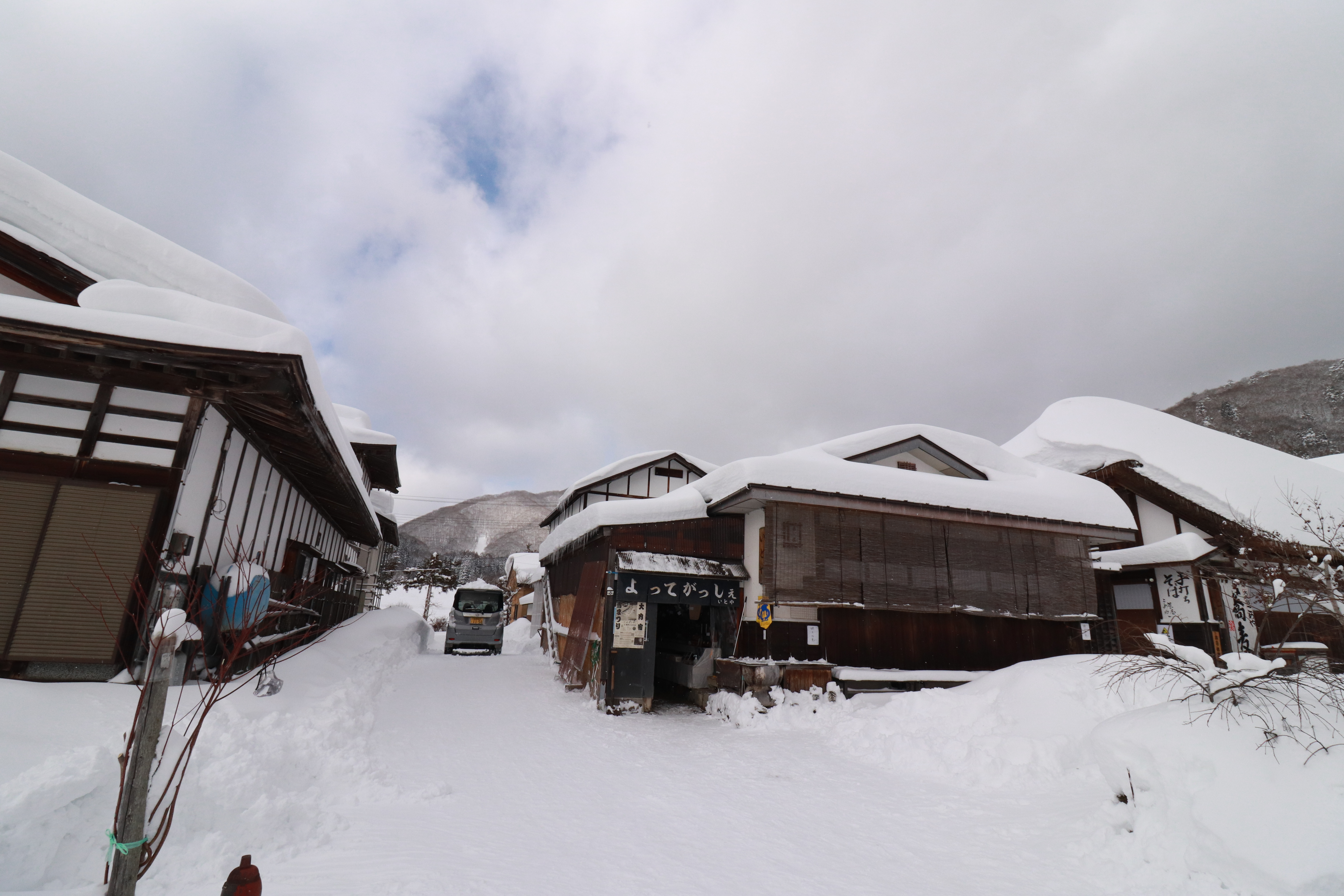 福島県南会津・下郷町。山あいの道を抜けると、いきなり時代劇のセットみたいな景色が開けます。